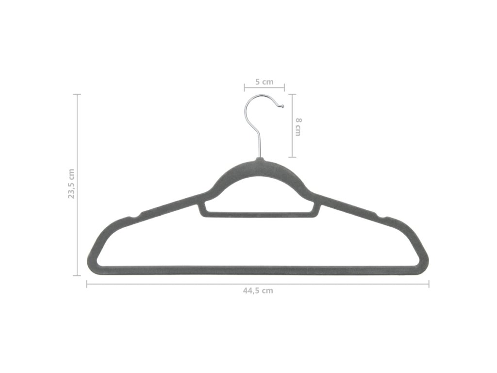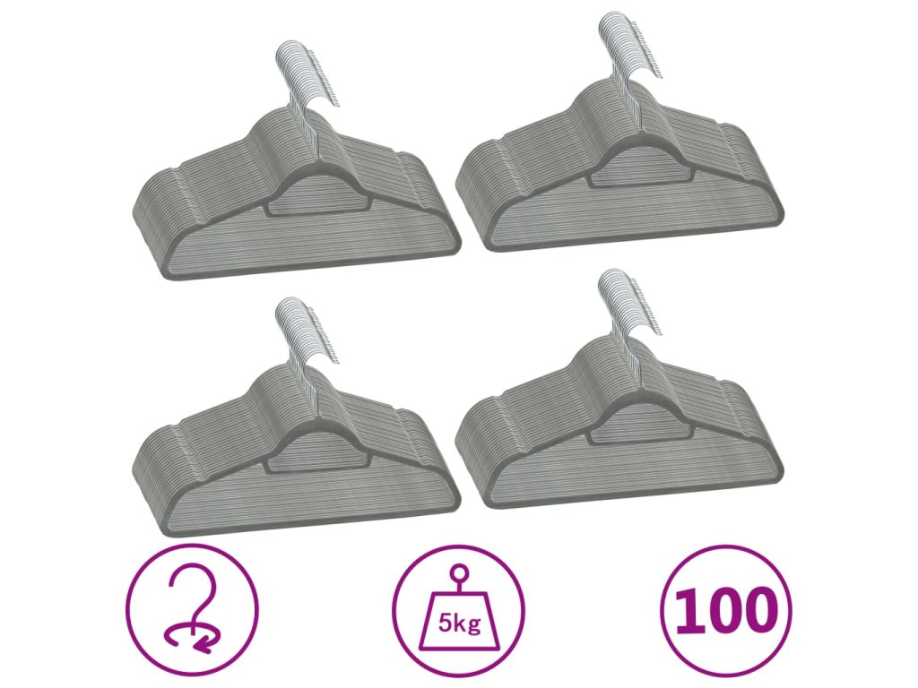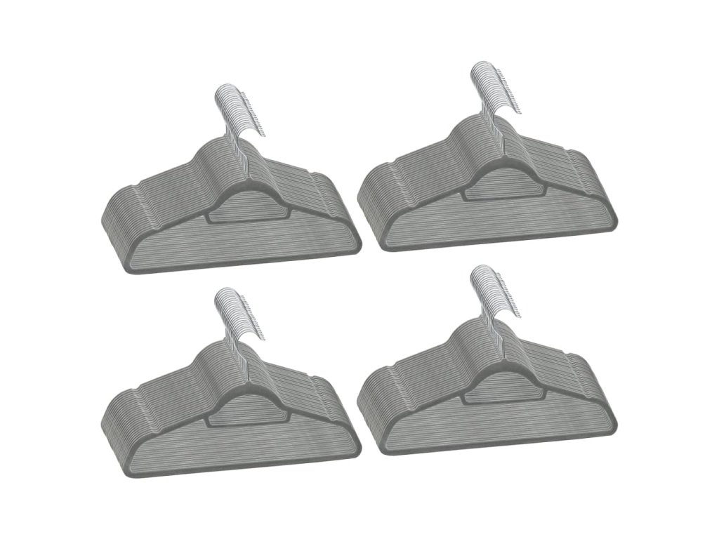 100 ks šatních ramínek protiskluzové šedé samet 289919