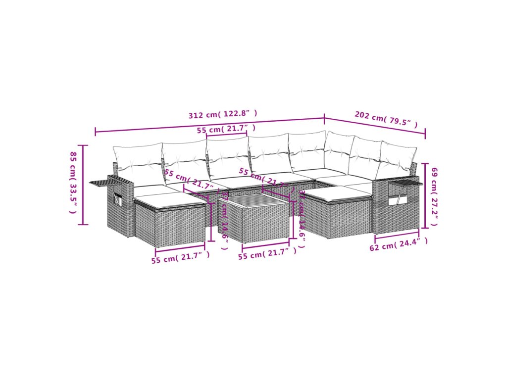 - Modulární design: Tato sada venkovního nábytku se vyznačuje modulární konstrukcí, je tedy zcela flexibilní a lze ji snadno přemisťovat, takže si můžete uspořádat venkovní nábytek dle vašich potřeb.