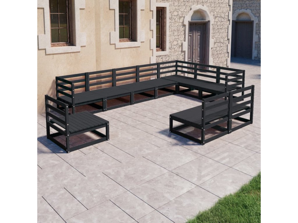 10dílná zahradní sedací souprava černá masivní borovice 3075798