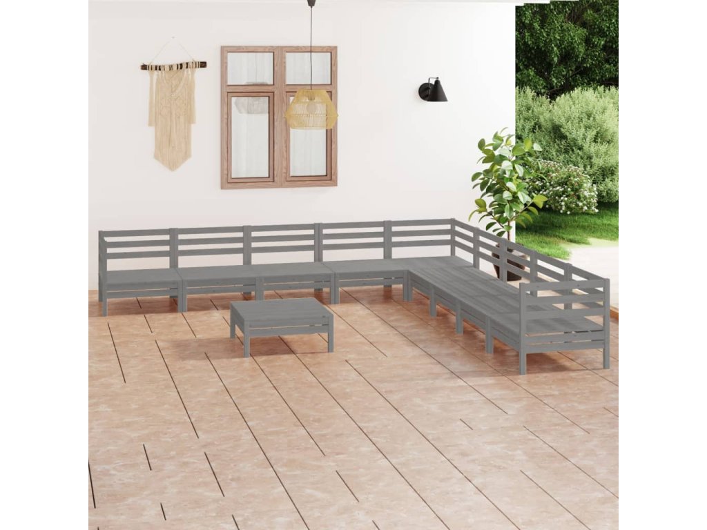 10dílná zahradní sedací souprava masivní borovice šedá 3083121
