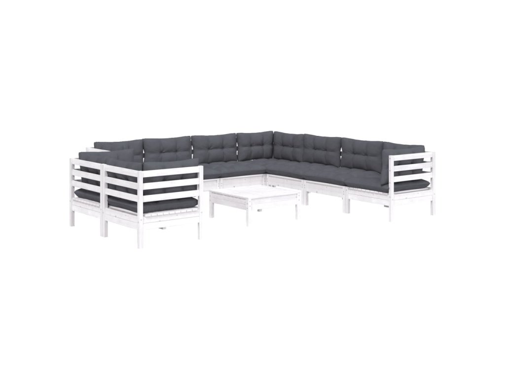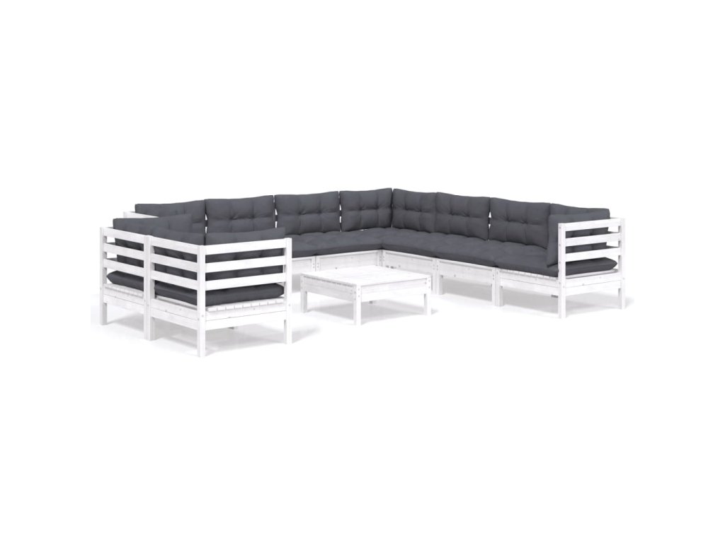10dílná zahradní sedací souprava podušky bílá masivní borovice 3096906