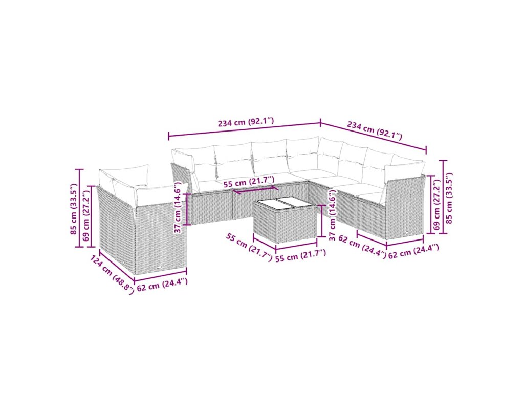 Tato zahradní sedací souprava je dokonalým doplňkem vaší zahrady, terasy nebo dvorku a poskytne vám pohodlné a příjemné místo, kde si můžete povídat s rodinou a přáteli nebo jen tak odpočívat a užívat si pobyt venku.