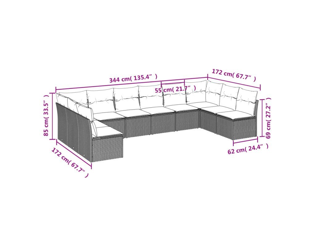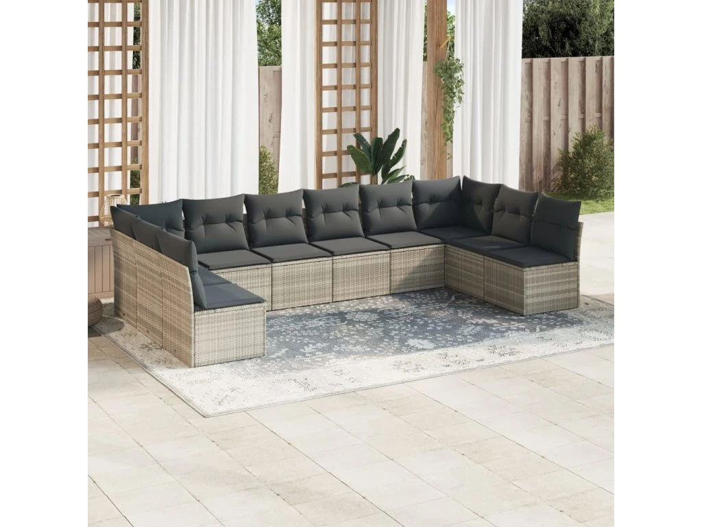 10dílná zahradní sedací souprava podušky světle šedá polyratan 3218092