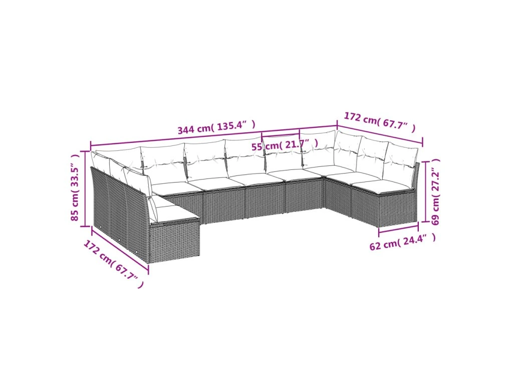 Tato zahradní sedací souprava je dokonalým doplňkem vaší zahrady, terasy nebo dvorku a poskytne vám pohodlné a příjemné místo, kde si můžete povídat s rodinou a přáteli nebo jen tak odpočívat a užívat si pobyt venku.