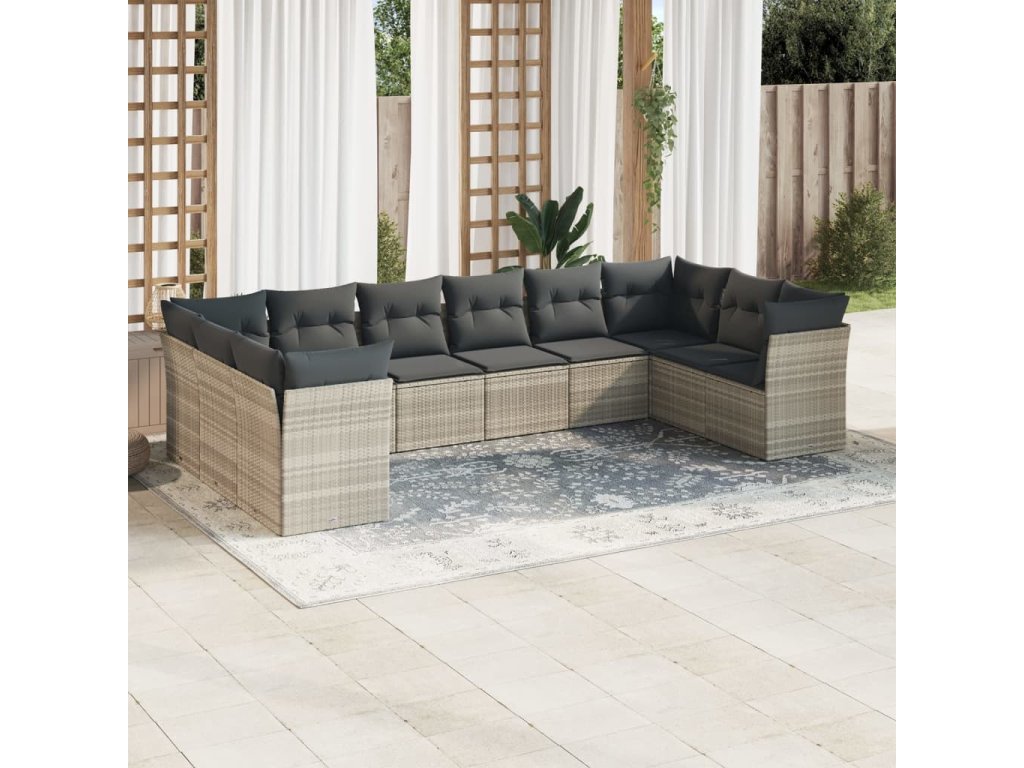 10dílná zahradní sedací souprava podušky světle šedá polyratan 3218202