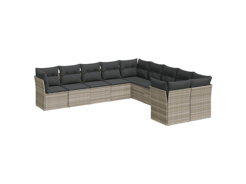 10dílná zahradní sedací souprava podušky světle šedá polyratan 3218242