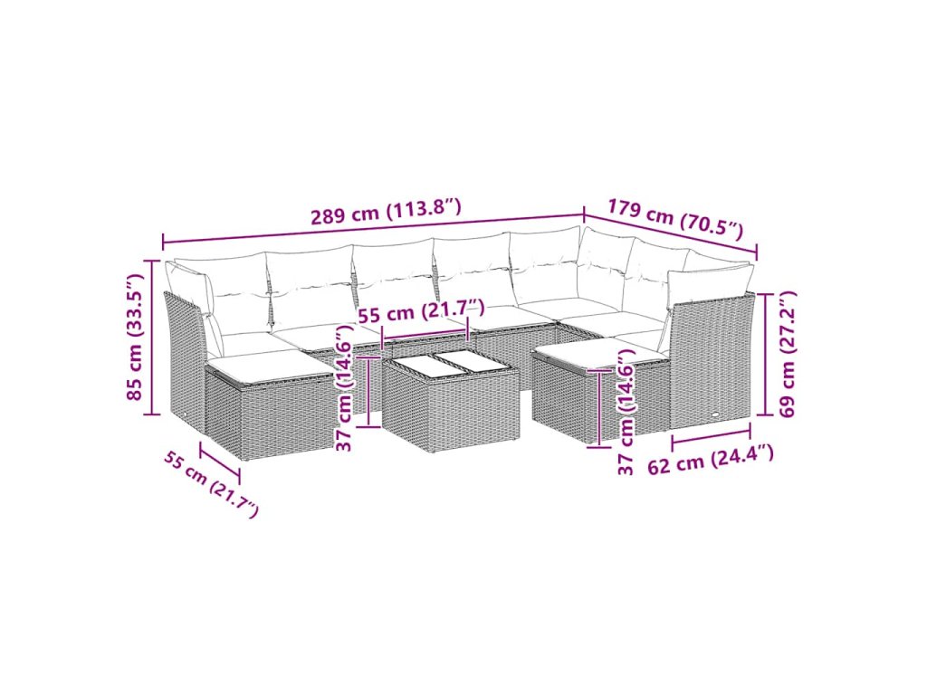 Tato zahradní sedací souprava je dokonalým doplňkem vaší zahrady, terasy nebo dvorku a poskytne vám pohodlné a příjemné místo, kde si můžete povídat s rodinou a přáteli nebo jen tak odpočívat a užívat si pobyt venku.