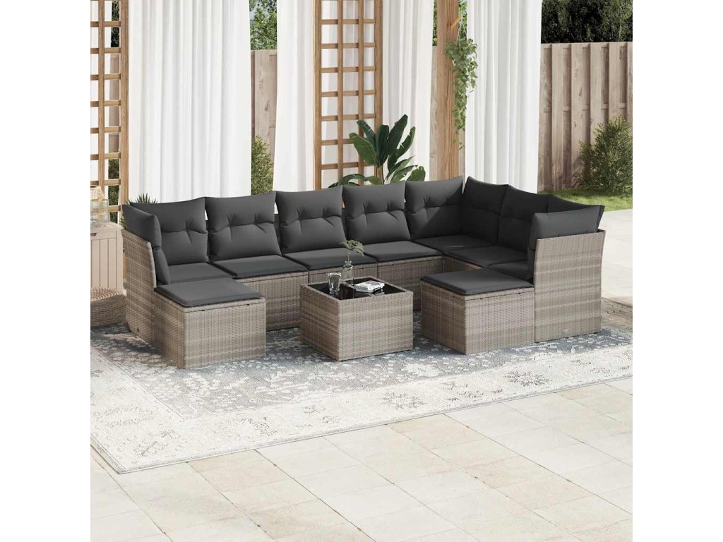 10dílná zahradní sedací souprava podušky světle šedá polyratan 3218582