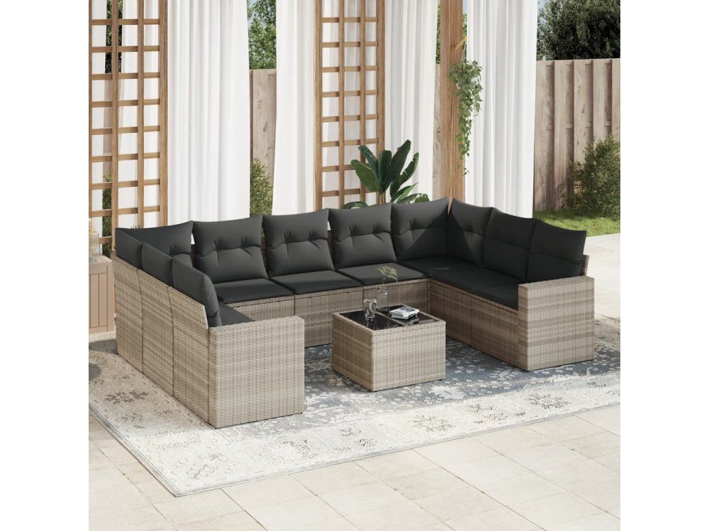 10dílná zahradní sedací souprava podušky světle šedá polyratan 3219402