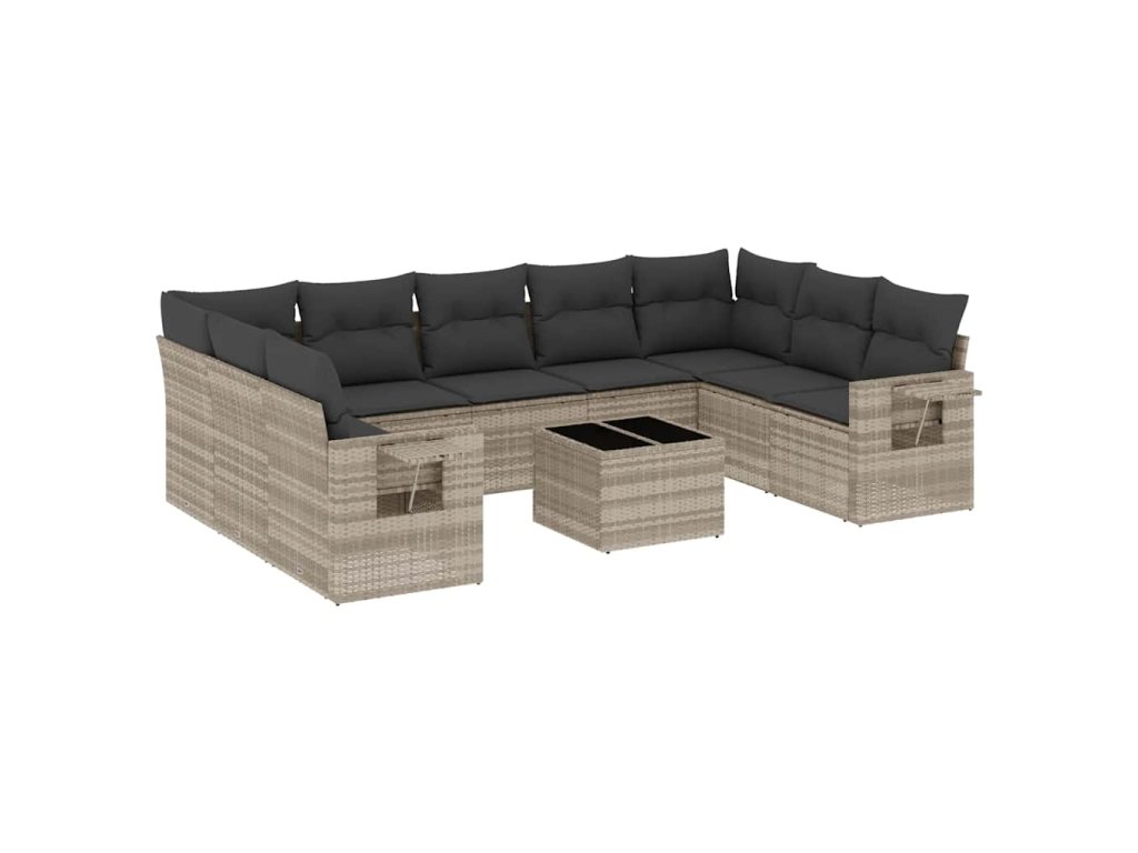 10dílná zahradní sedací souprava podušky světle šedá polyratan 3220611