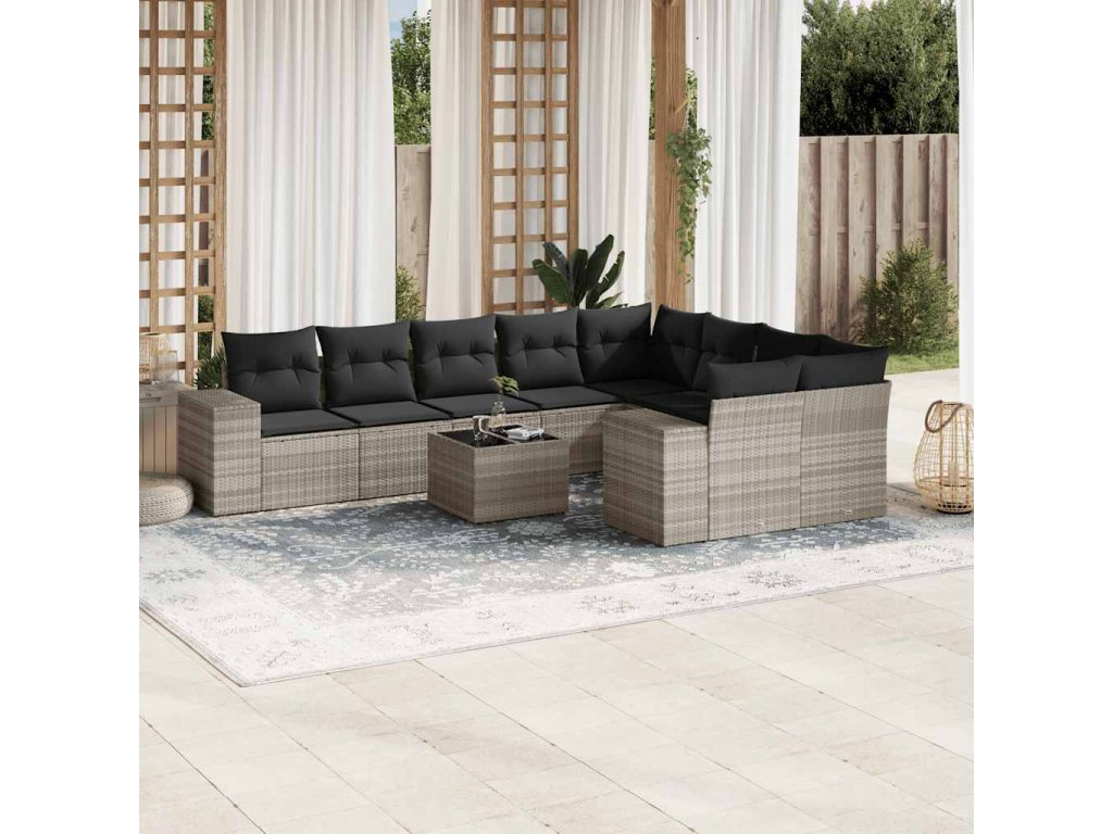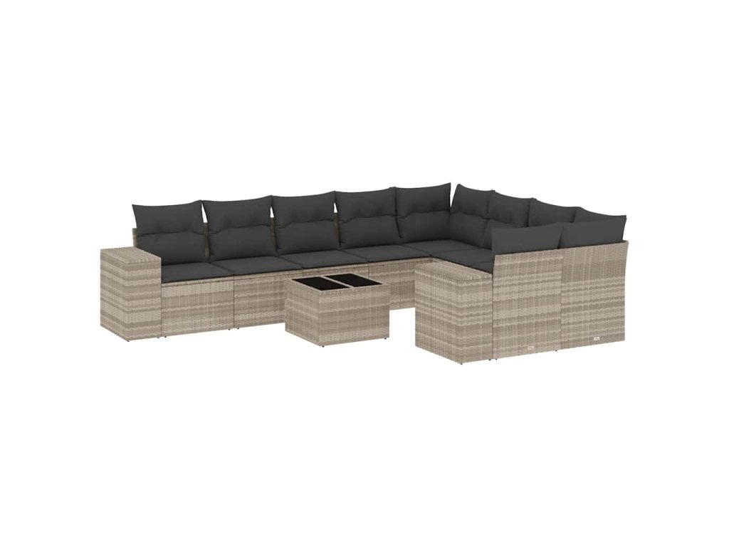 10dílná zahradní sedací souprava podušky světle šedá polyratan 3223051