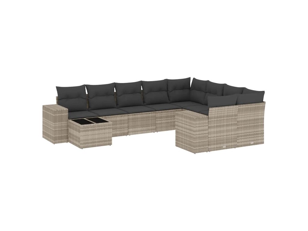 10dílná zahradní sedací souprava podušky světle šedá polyratan 3223061