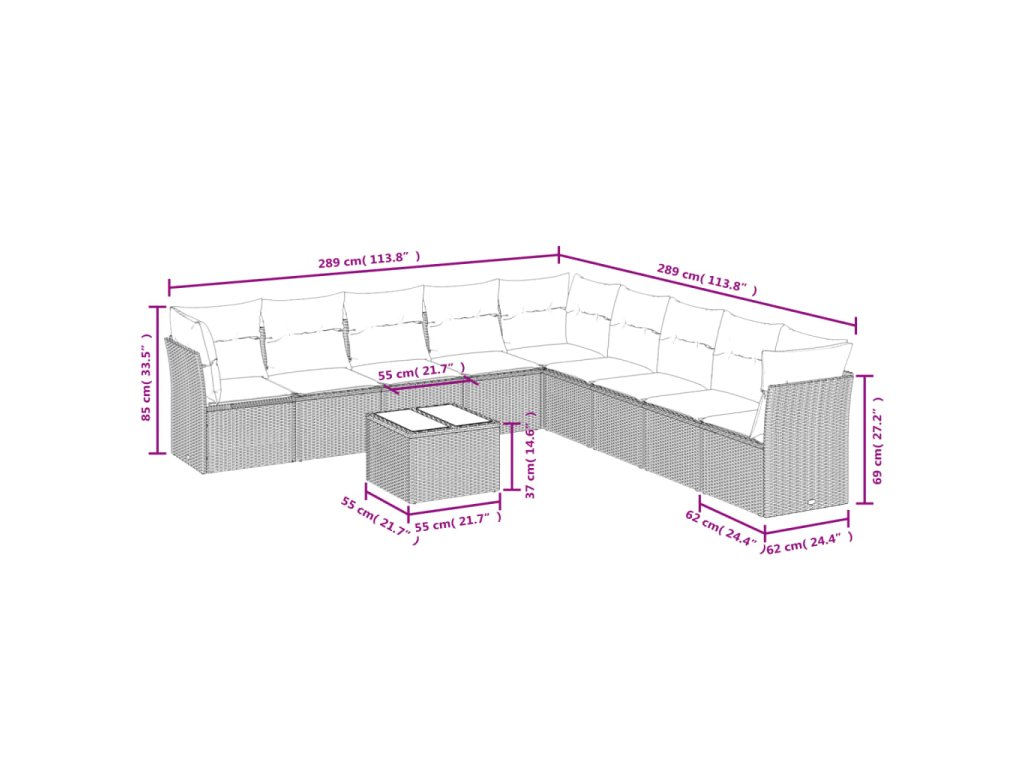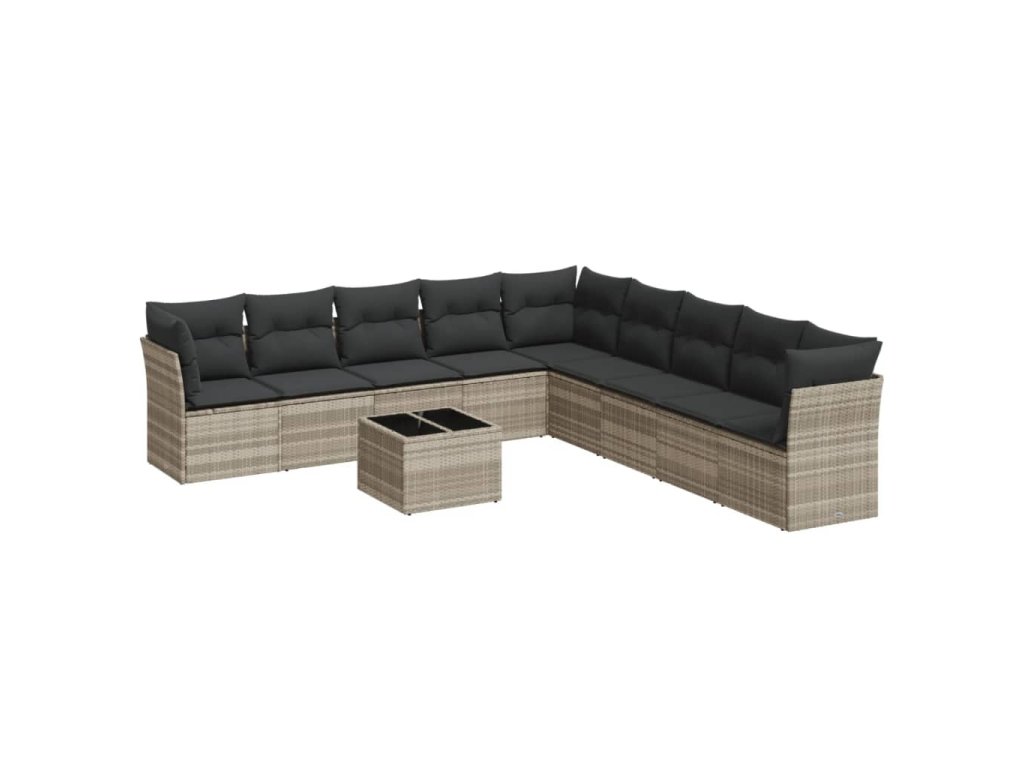 10dílná zahradní sedací souprava podušky světle šedá polyratan 3249631