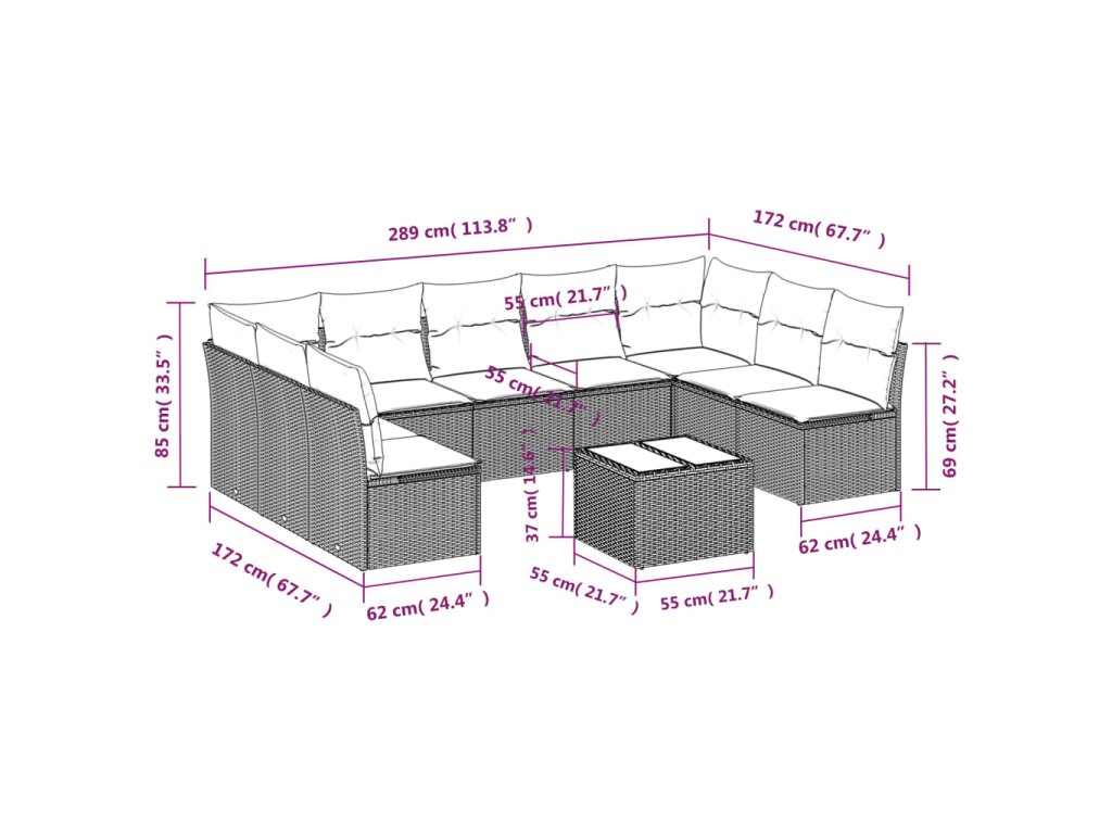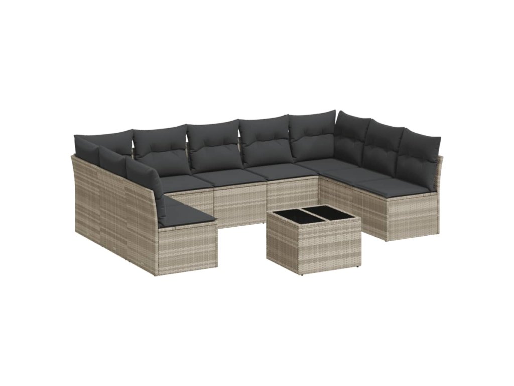 10dílná zahradní sedací souprava podušky světle šedá polyratan 3249921