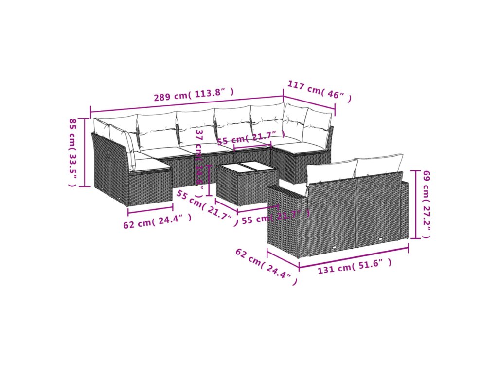 Tato zahradní sedací souprava je dokonalým doplňkem vaší zahrady, terasy nebo dvorku a poskytne vám pohodlné a příjemné místo, kde si můžete povídat s rodinou a přáteli nebo jen tak odpočívat a užívat si pobyt venku.