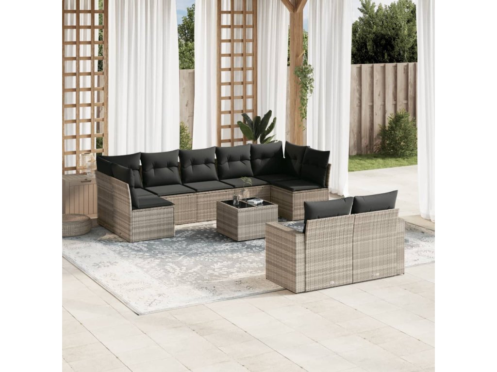 10dílná zahradní sedací souprava podušky světle šedá polyratan 3251769