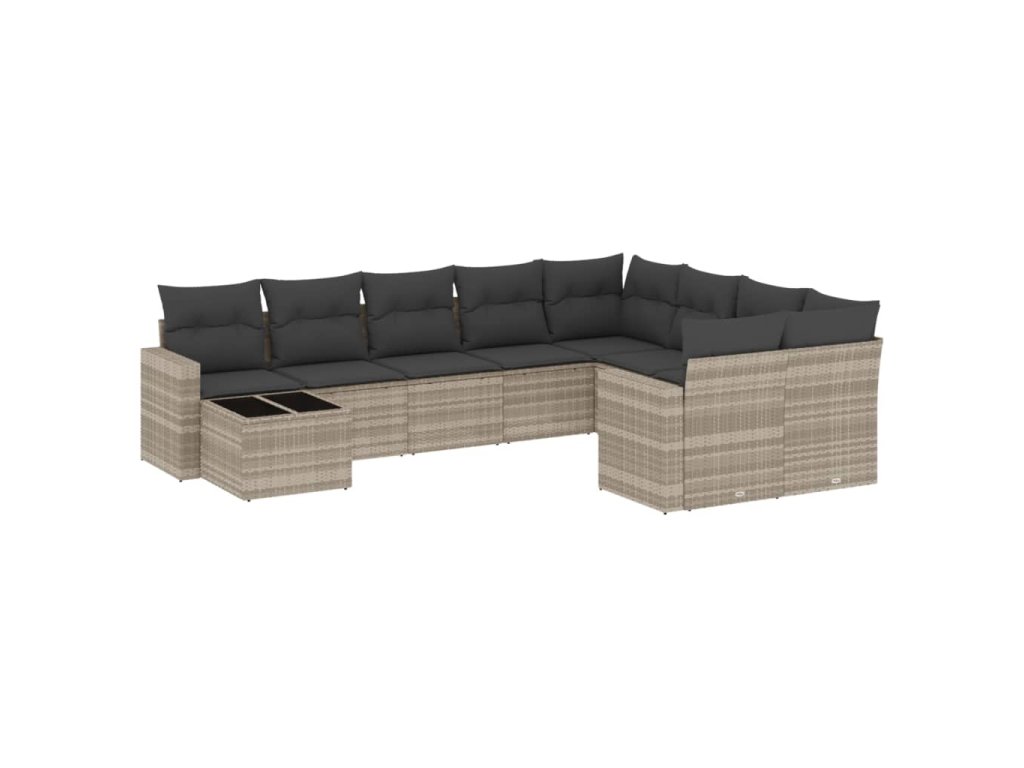 10dílná zahradní sedací souprava podušky světle šedá polyratan 3251799