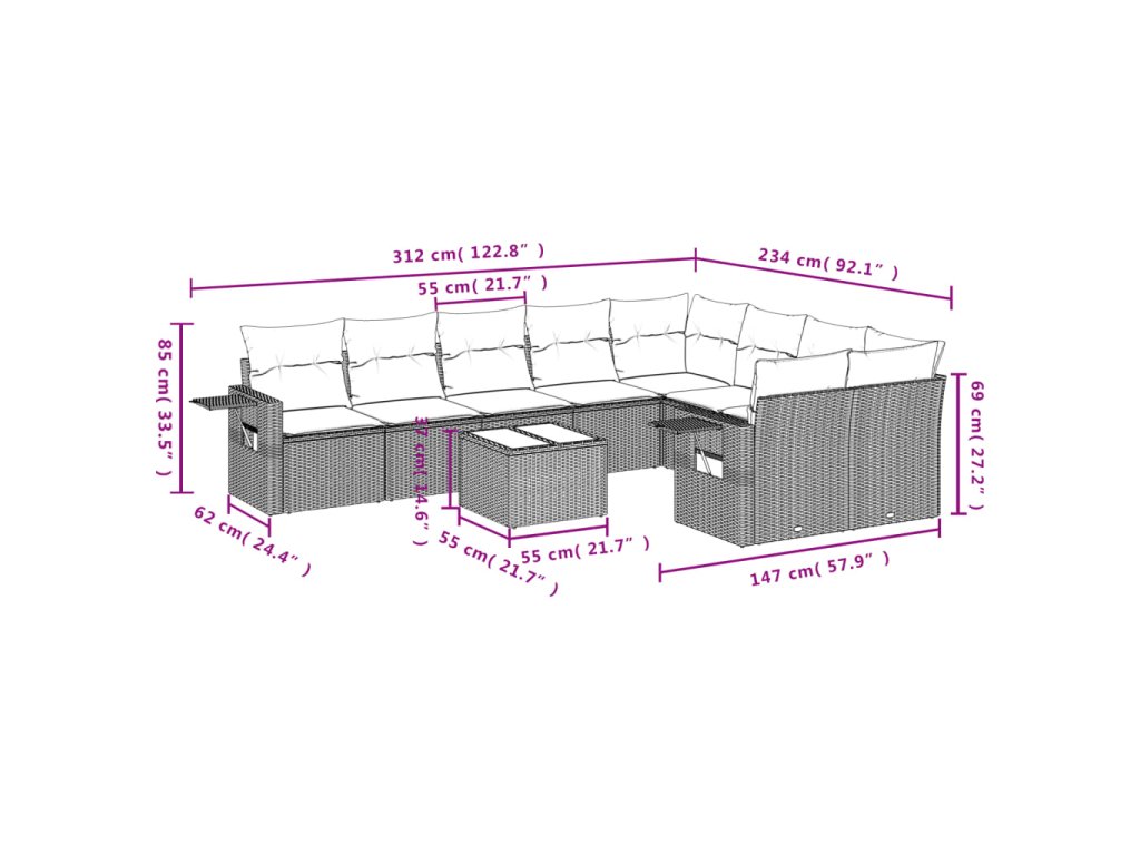 10dílná zahradní sedací souprava podušky světle šedá polyratan 3252989