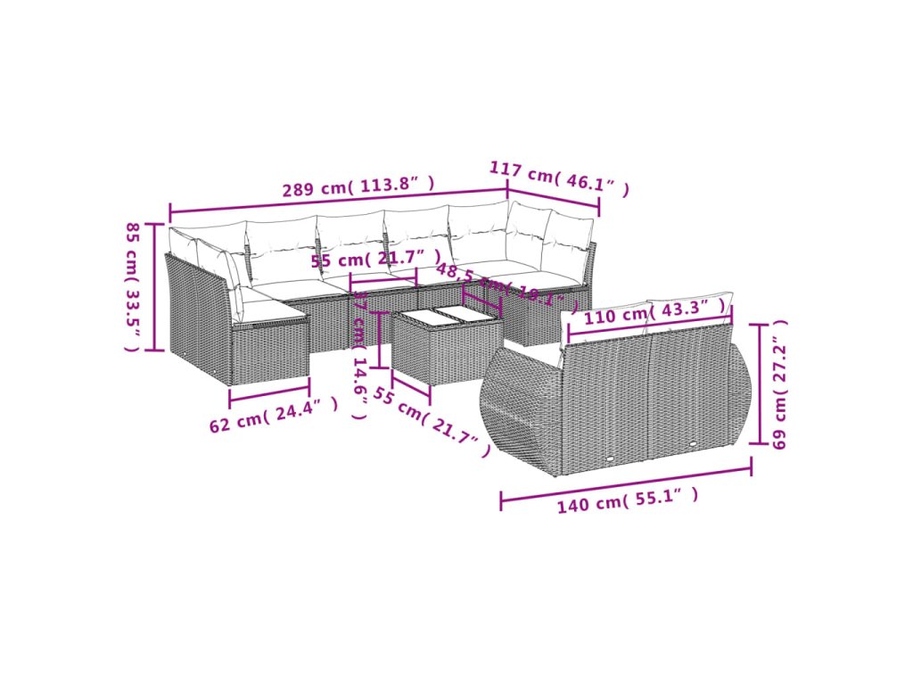 Tato zahradní sedací souprava je dokonalým doplňkem vaší zahrady, terasy nebo dvorku a poskytne vám pohodlné a příjemné místo, kde si můžete povídat s rodinou a přáteli nebo jen tak odpočívat a užívat si pobyt venku.