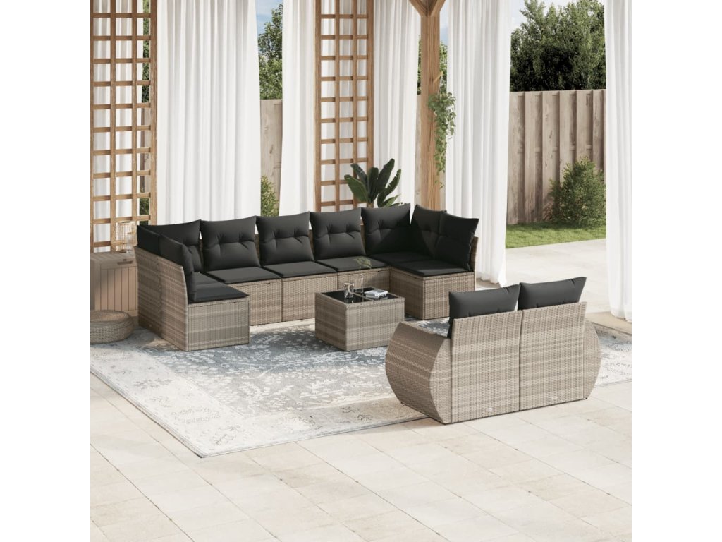 10dílná zahradní sedací souprava podušky světle šedá polyratan 3254169