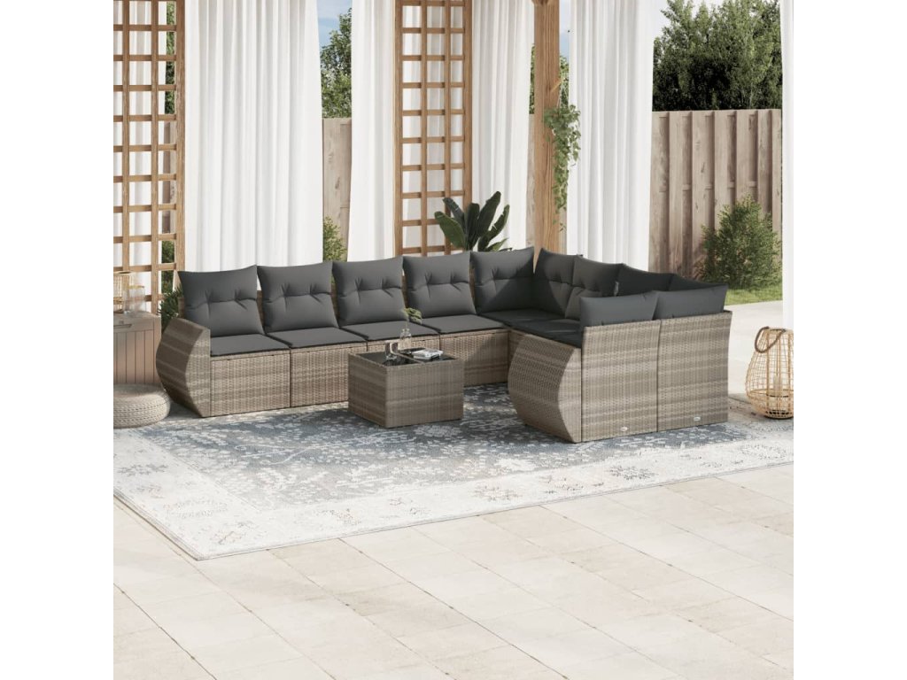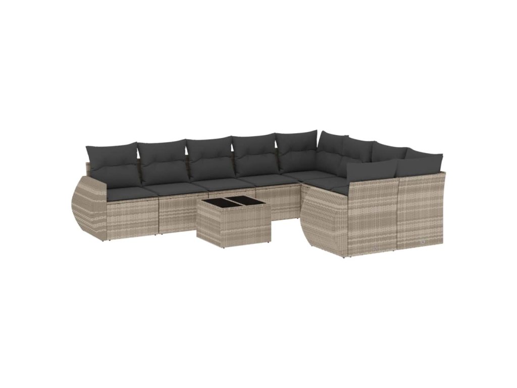 10dílná zahradní sedací souprava podušky světle šedá polyratan 3254189