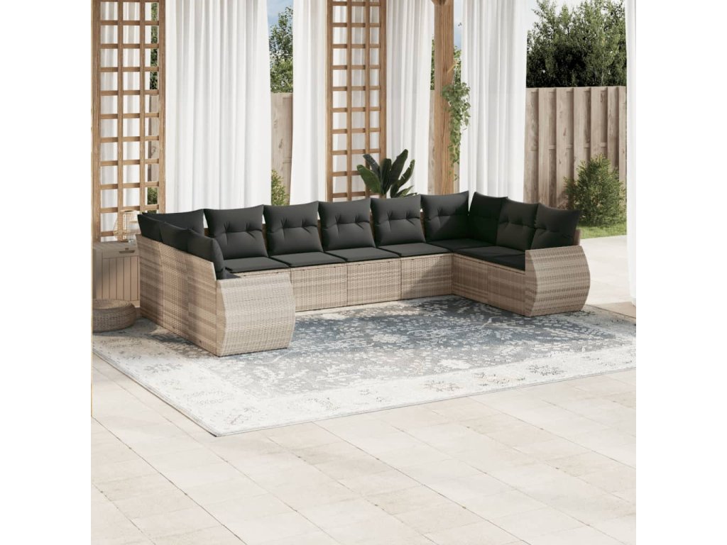 10dílná zahradní sedací souprava podušky světle šedá polyratan 3254209