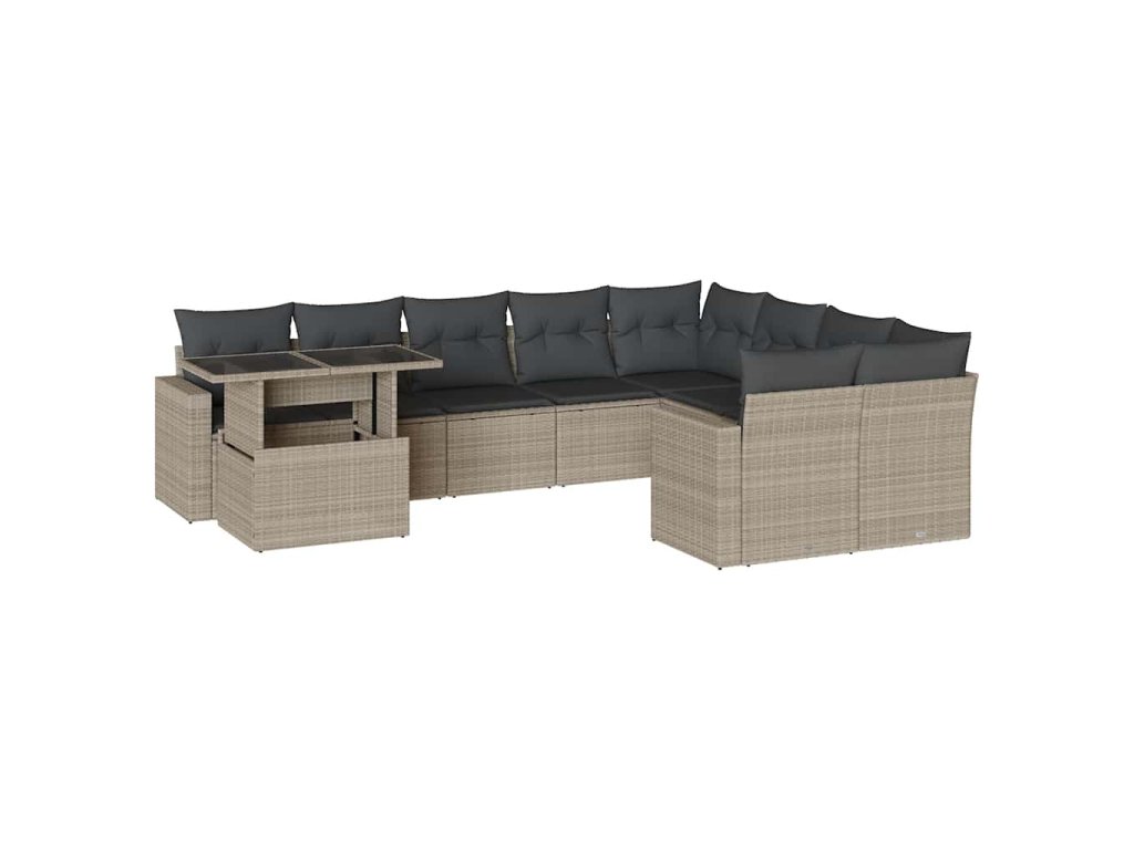 10dílná zahradní sedací souprava podušky světle šedá polyratan 3267512