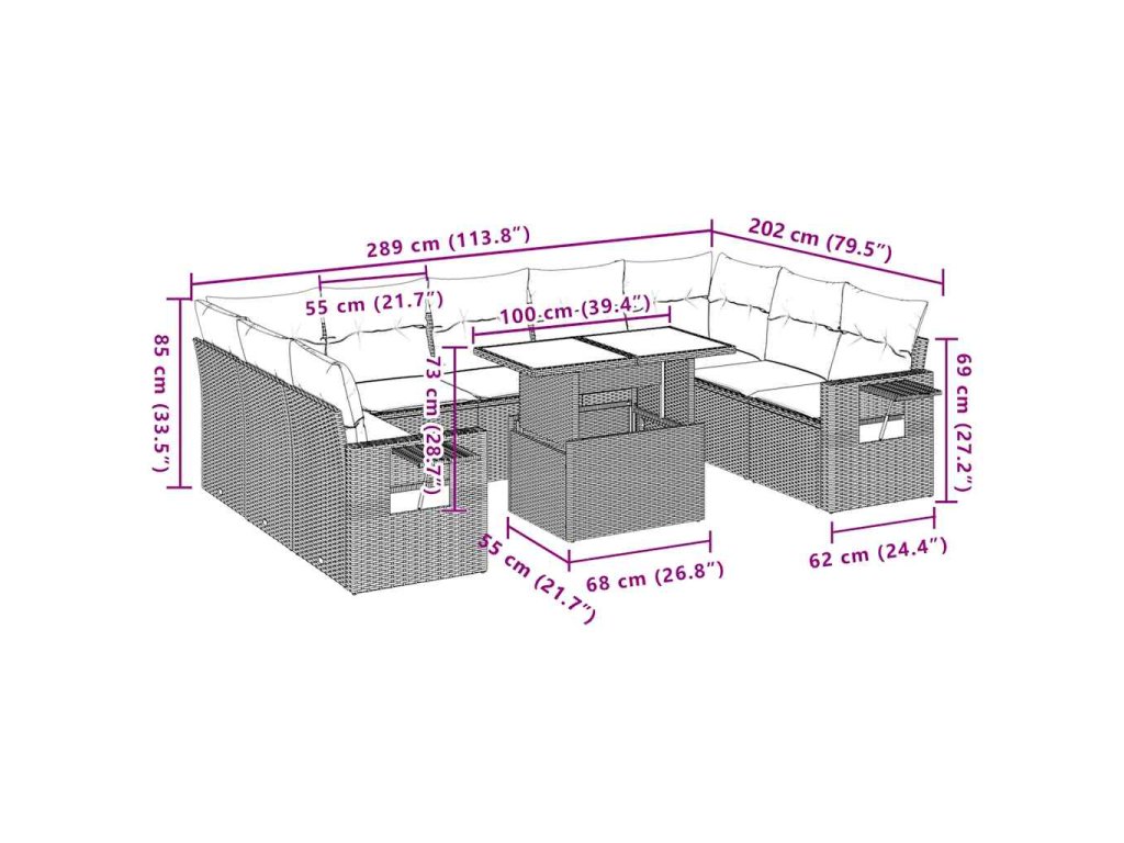 Tato zahradní sedací souprava je dokonalým doplňkem vaší zahrady, terasy nebo dvorku a poskytne vám pohodlné a příjemné místo, kde si můžete povídat s rodinou a přáteli nebo jen tak odpočívat a užívat si pobyt venku.