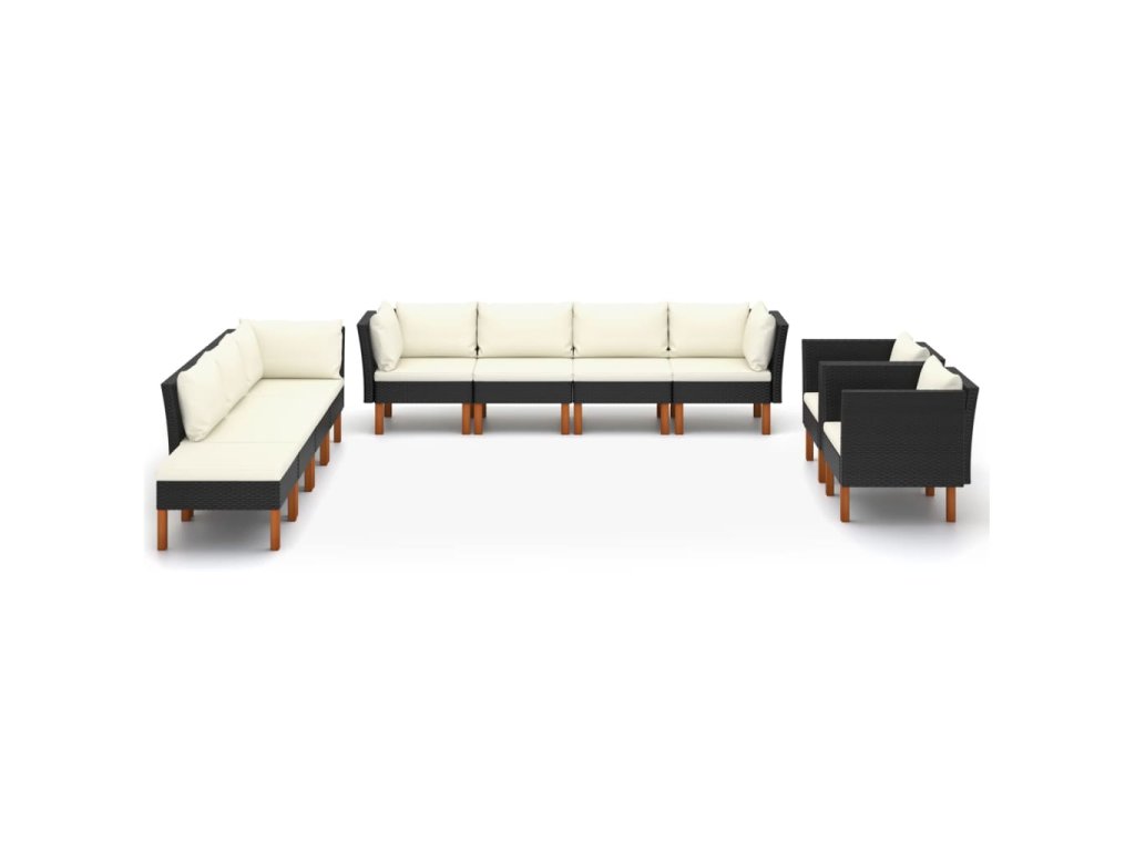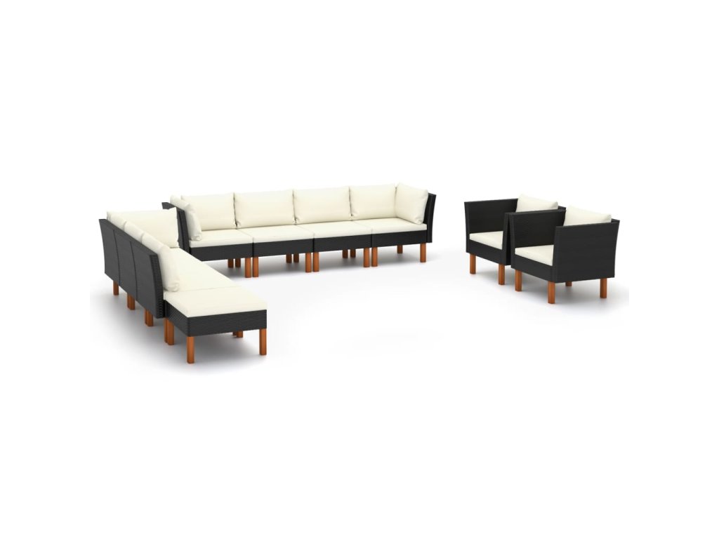 10dílná zahradní sedací souprava polyratan a eukalyptus černá 3082091