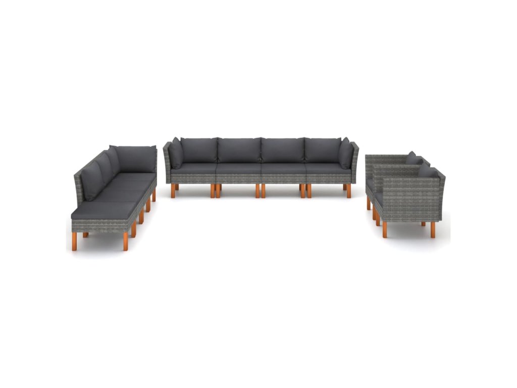 10dílná zahradní sedací souprava polyratan a eukalyptus šedá 3082090