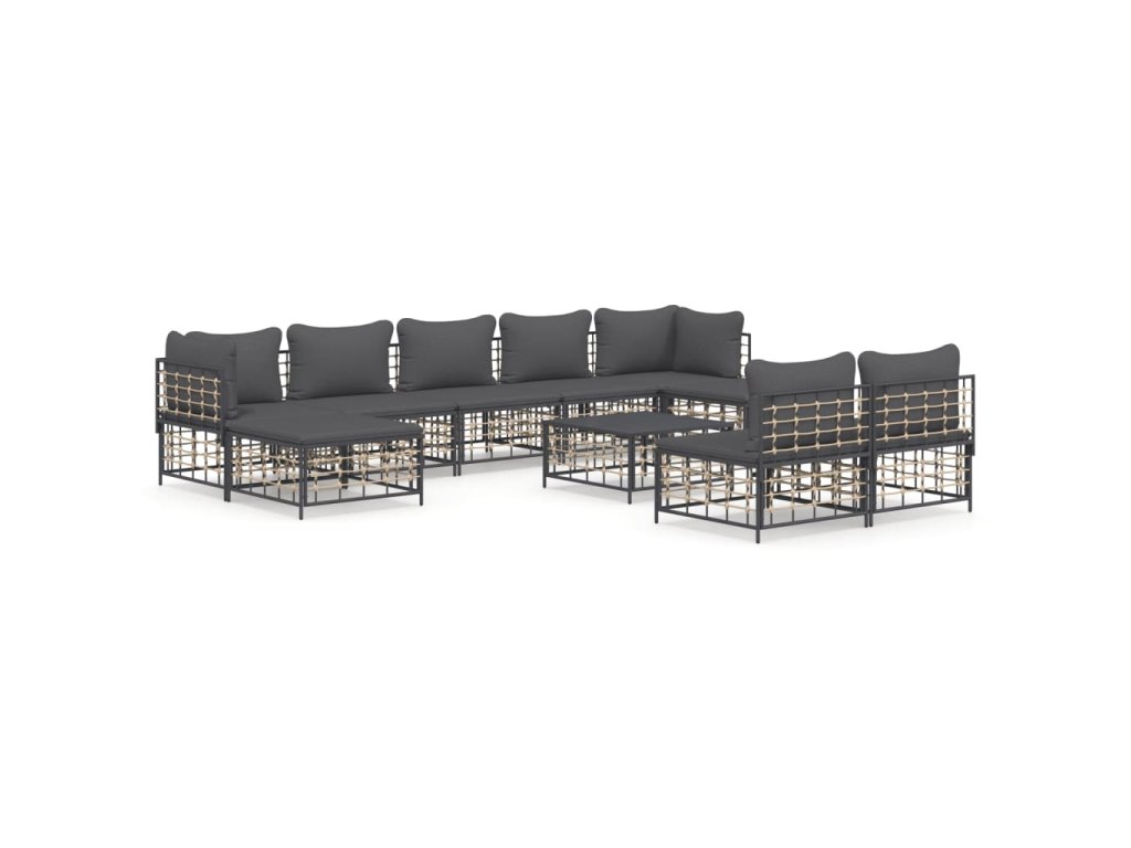 10dílná zahradní sedací souprava s poduškami antracit polyratan 3186805