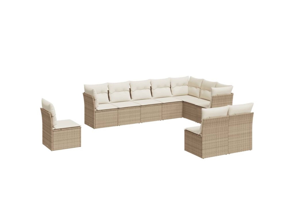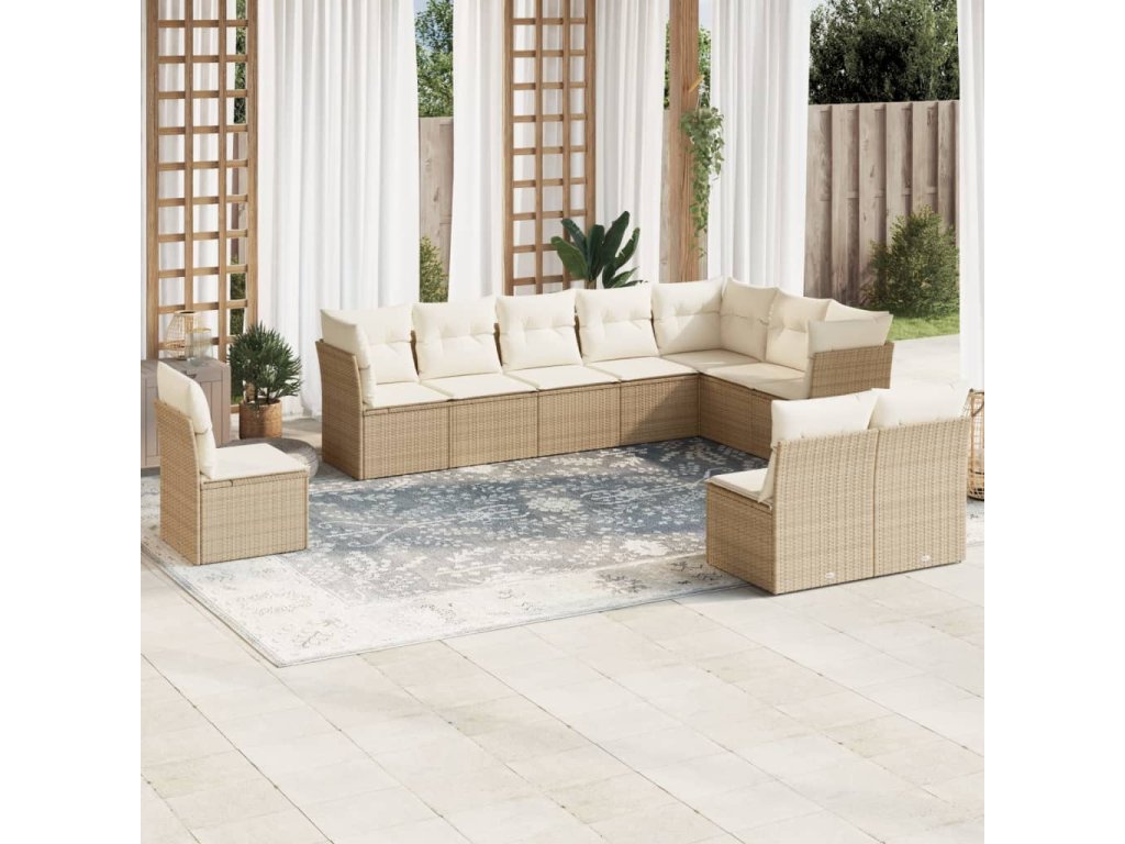 10dílná zahradní sedací souprava s poduškami béžová polyratan 3217798