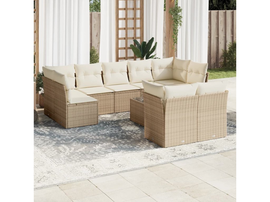 10dílná zahradní sedací souprava s poduškami béžová polyratan 3218158
