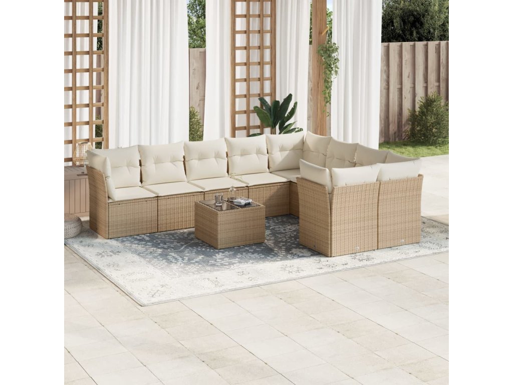 10dílná zahradní sedací souprava s poduškami béžová polyratan 3218178