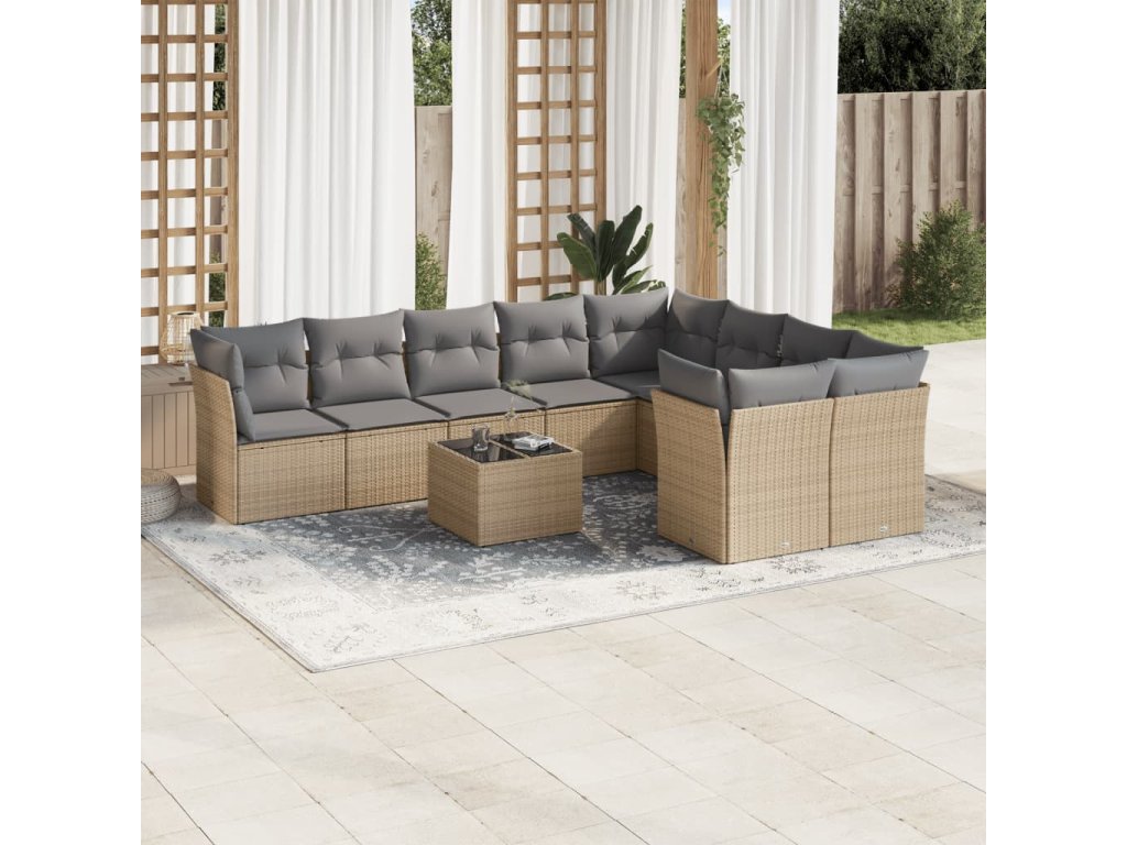 10dílná zahradní sedací souprava s poduškami béžová polyratan 3218179