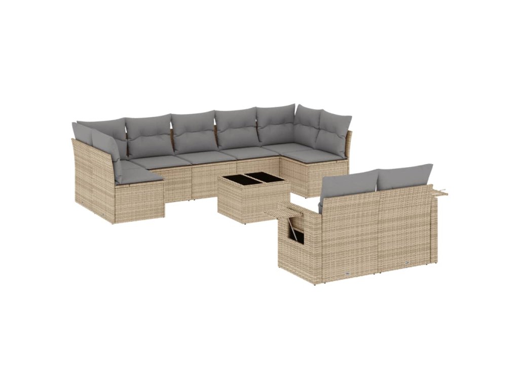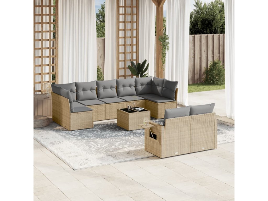 10dílná zahradní sedací souprava s poduškami béžová polyratan 3220628