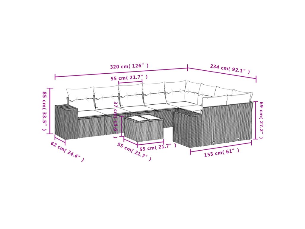 10dílná zahradní sedací souprava s poduškami béžová polyratan 3223047