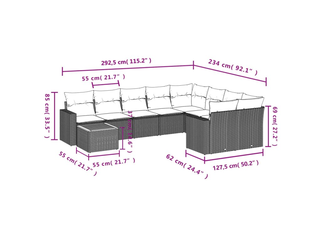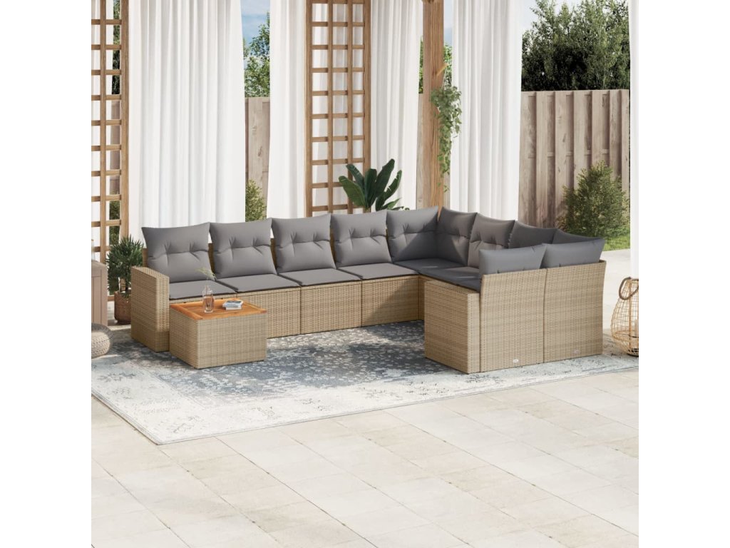 10dílná zahradní sedací souprava s poduškami béžová polyratan 3224288