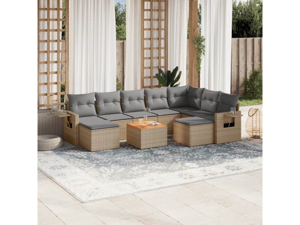 10dílná zahradní sedací souprava s poduškami béžová polyratan 3224848