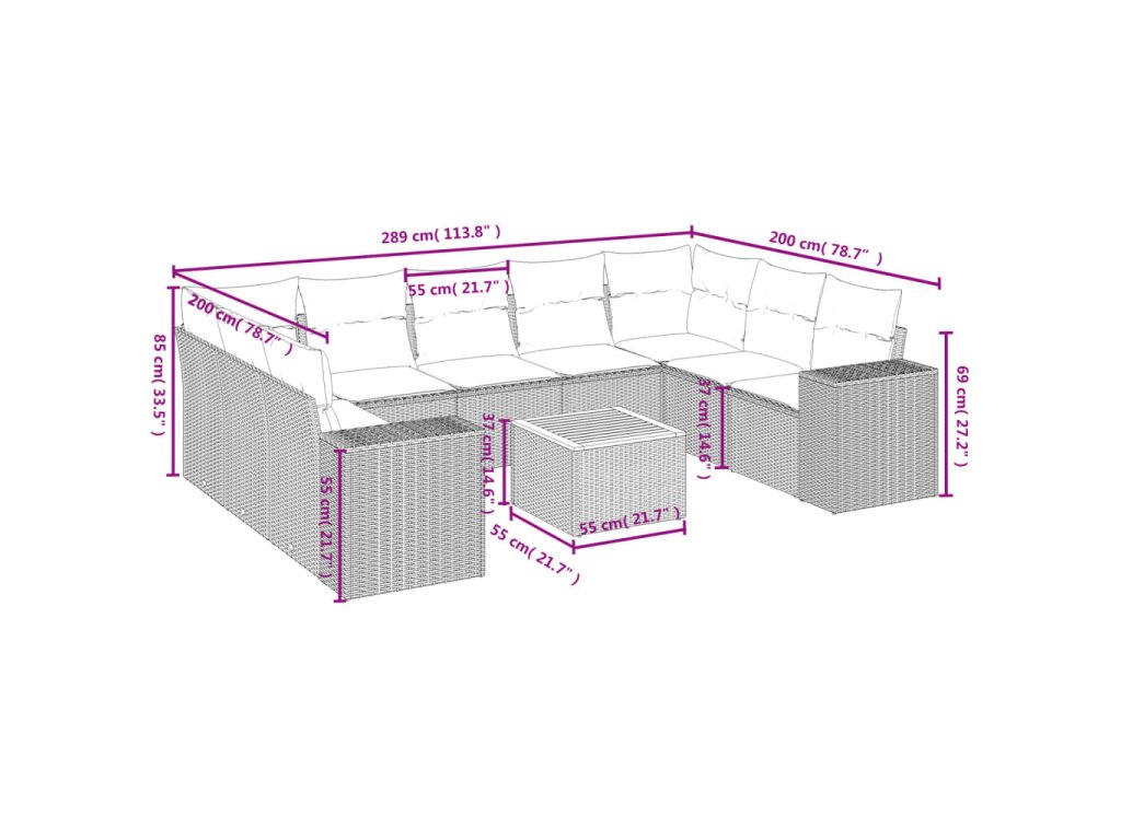 10dílná zahradní sedací souprava s poduškami béžová polyratan 3225590