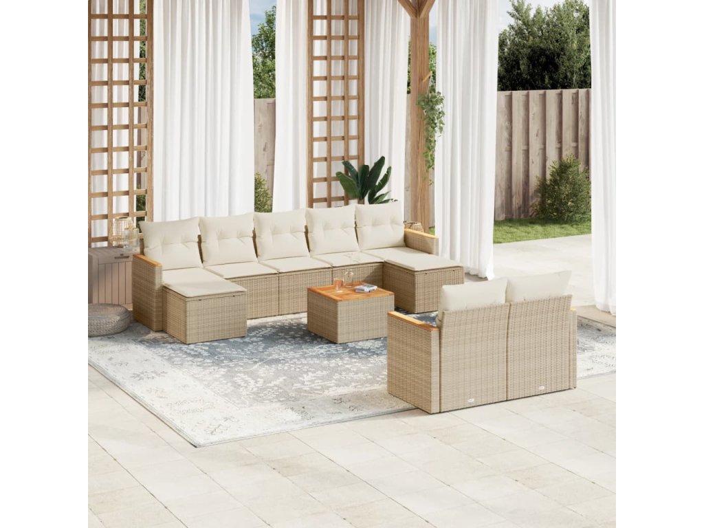 10dílná zahradní sedací souprava s poduškami béžová polyratan 3226408