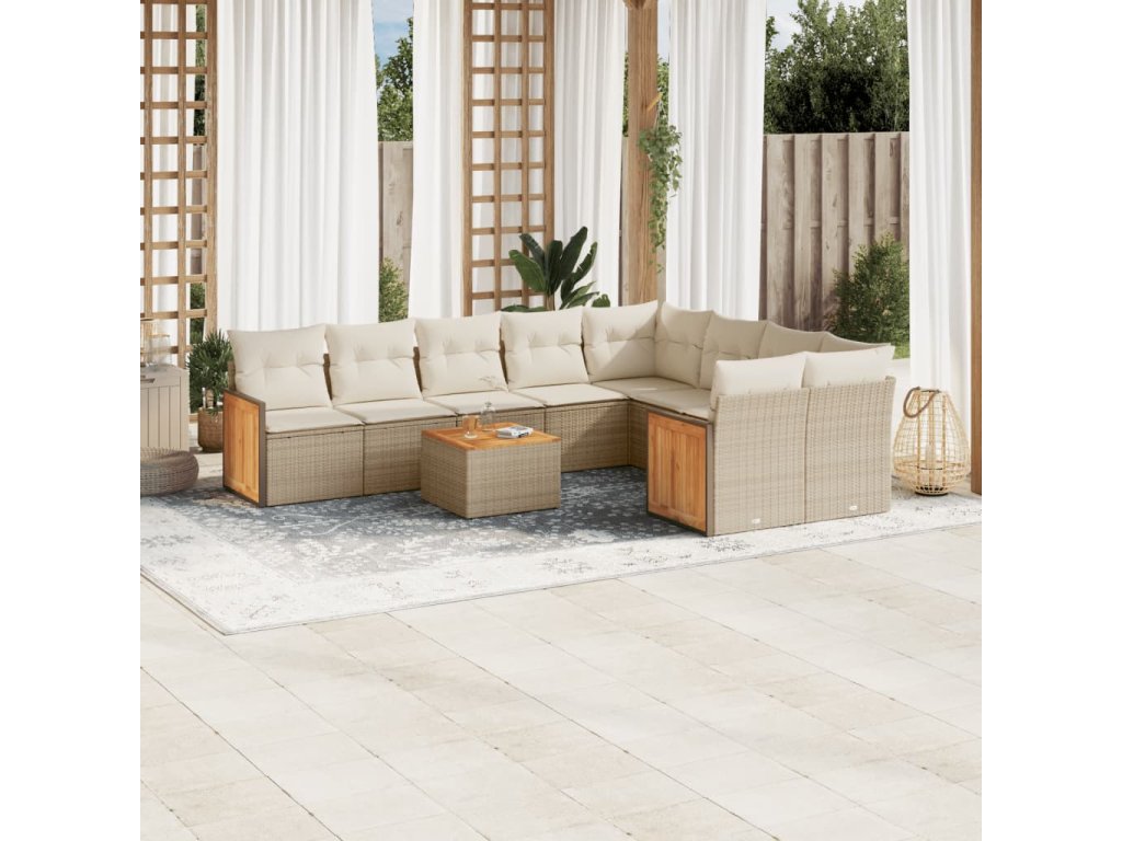 10dílná zahradní sedací souprava s poduškami béžová polyratan 3227990