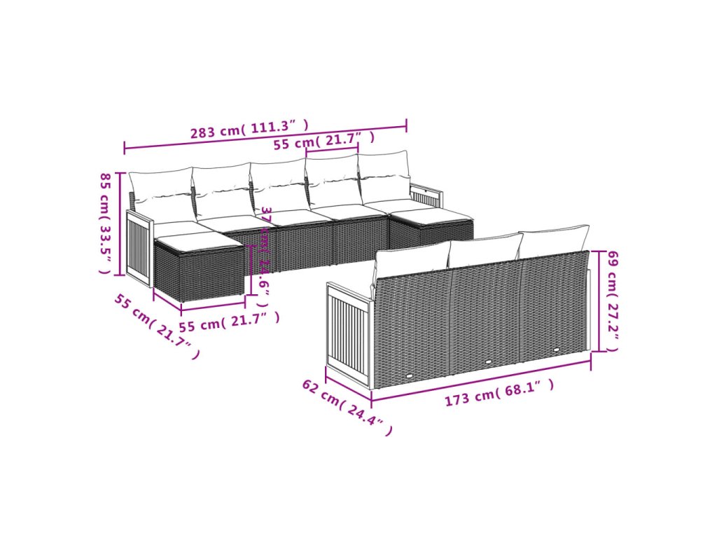 10dílná zahradní sedací souprava s poduškami béžová polyratan 3228096