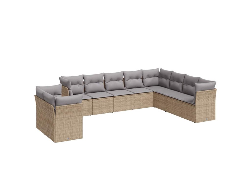 10dílná zahradní sedací souprava s poduškami béžová polyratan 3249698