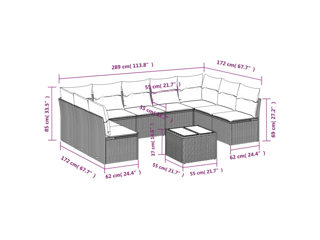 10dílná zahradní sedací souprava s poduškami béžová polyratan 3249917