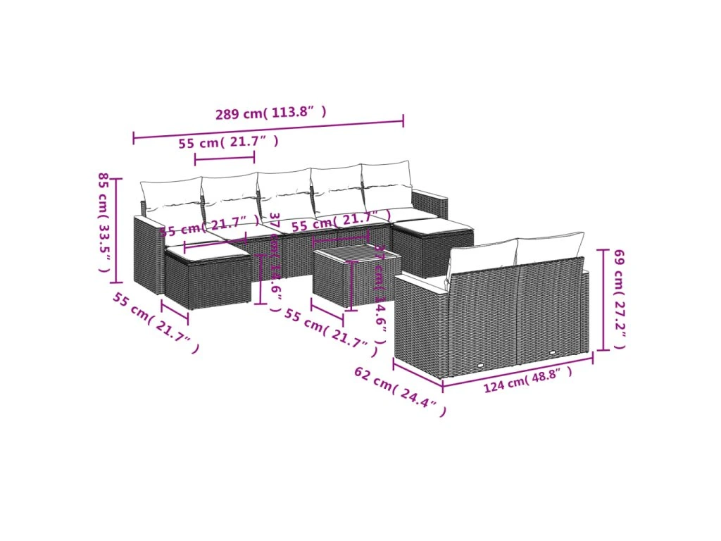 Tato zahradní sedací souprava je dokonalým doplňkem vaší zahrady, terasy nebo dvorku a poskytne vám pohodlné a příjemné místo, kde si můžete povídat s rodinou a přáteli nebo jen tak odpočívat a užívat si pobyt venku.