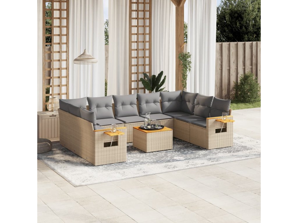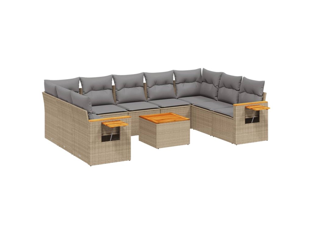 10dílná zahradní sedací souprava s poduškami béžová polyratan 3259525