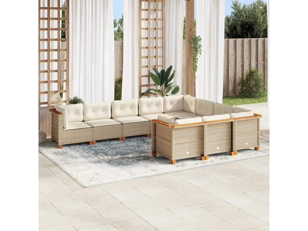 10dílná zahradní sedací souprava s poduškami béžová polyratan 3262033