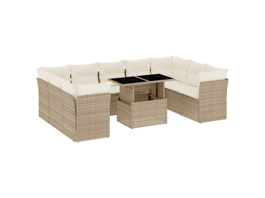 10dílná zahradní sedací souprava s poduškami béžová polyratan 3266818