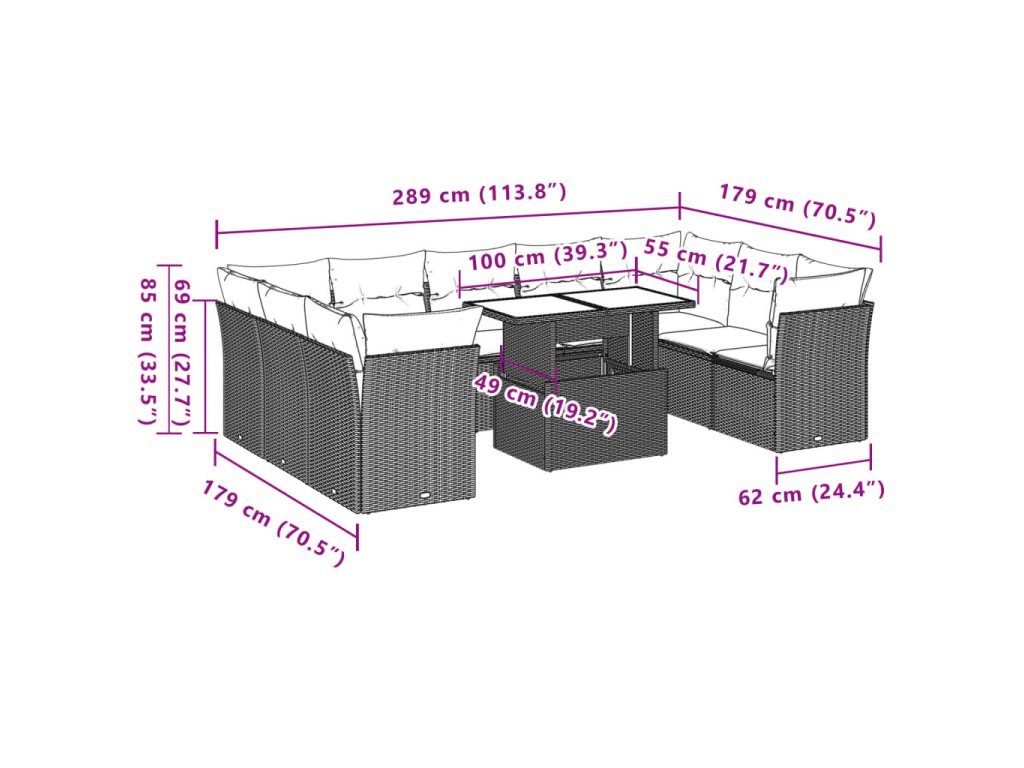Tato zahradní sedací souprava je dokonalým doplňkem vaší zahrady, terasy nebo dvorku a poskytne vám pohodlné a příjemné místo, kde si můžete povídat s rodinou a přáteli nebo jen tak odpočívat a užívat si pobyt venku.